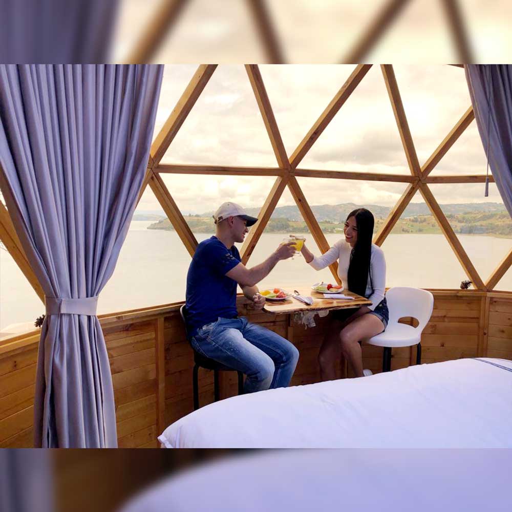 El plan de cada domo por pareja, incluye bebidas calientes ilimitadas: Tinto, agua de panela, fogata (aplica todos los días), desayuno.*